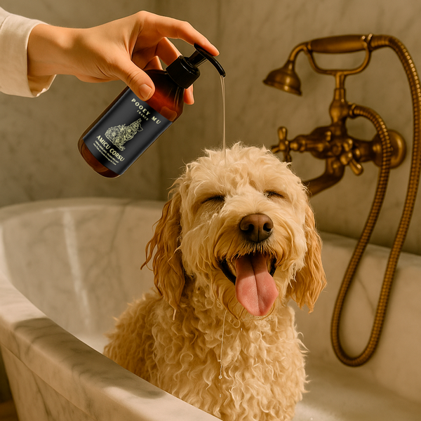 Our formulations are plant-based, gentle, and infused with botanicals chosen for both their efficacy and purity. Handcrafted in small batches in France, our dog shampoos and conditioners blend the essence of Corsican nature, ethically sourced essential oils, and timeless French elegance.